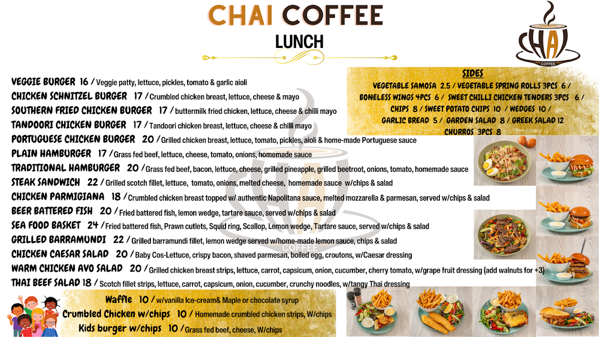 Welcome to Chai Coffee, a vibrant café located in the heart of Parramatta. This gem at 1/27 Hunter St offers a delightful escape with its comforting atmosphere and an impressive menu designed to please every palate. From mouth-watering burgers to fresh salads, each dish is crafted to perfection.
